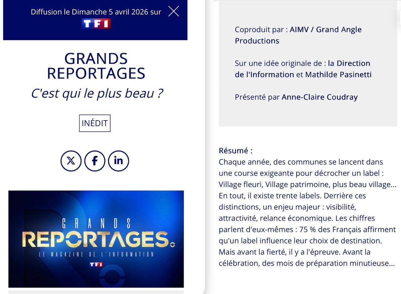 TF1 a programmé le dimanche 5 avril lors du week-end de Pâques le reportage tourné à Chambon qui passera dans l’émission Grands Reportages après le journal TV d’Anne-Claire Coudray ![]()